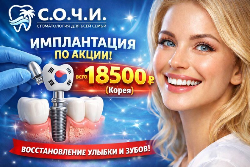 Акция в стоматологии С.О.Ч.И. Иплантация зубов 18500