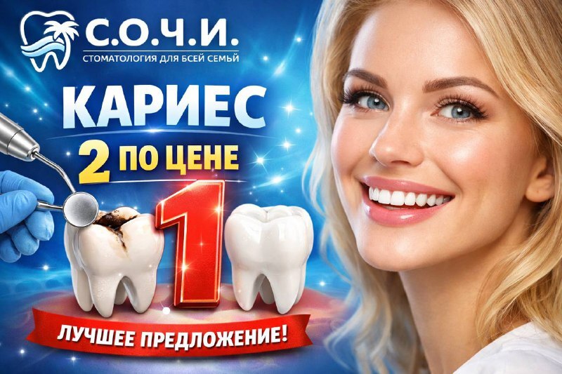 Лечение кариеса 2 зубов по цене 1 ! Акция распространяется на взрослых и детей без ограничения по возрасту!